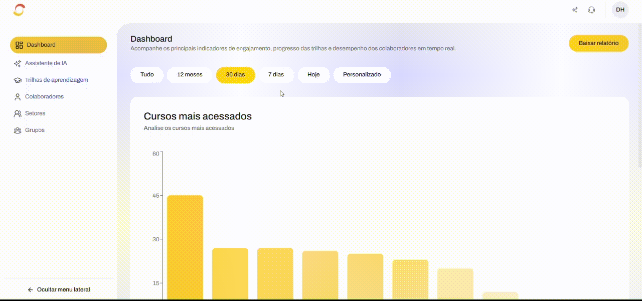 Com trilhas personalizadas, relatórios em tempo real e cursos que aceleram resultados e fortalecem a cultura.